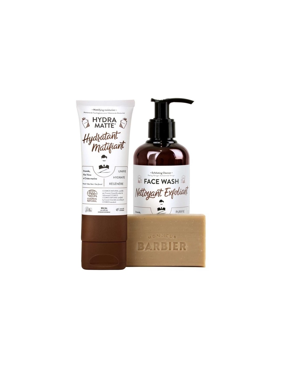 La Crema Viso Monsieur Barbier opacizza e uniforma l'incarnato in un solo gesto! Arricchito con olio di mandorle dolci, aloe vera e samphire, ripristina la barriera cutanea, idrata in profondità e rassoda la pelle riducendo i segni di affaticamento e lucentezza. Non unge né appiccicoso, la sua consistenza fluida penetra rapidamente e dona una sensazione di freschezza.