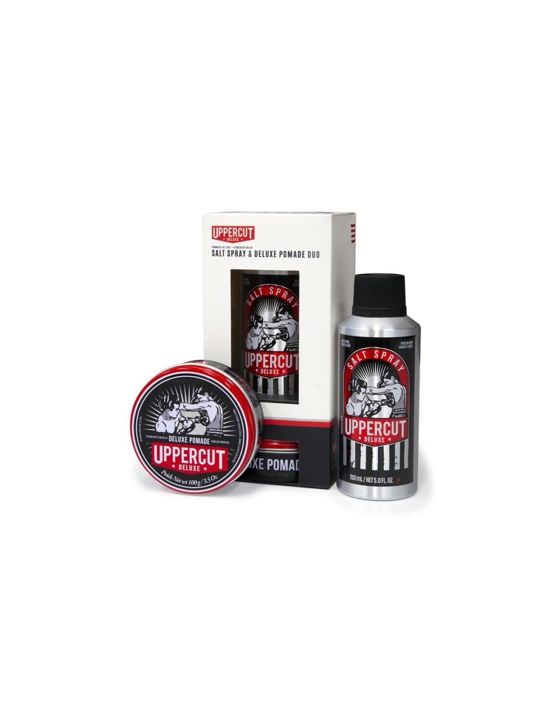 Uppercut Deluxe Salt Spray è stato ispirato dai clienti che sarebbero venuti per tagli di capelli direttamente dal surf. Grazie all'acqua salata, i loro capelli erano perfettamente preparati per lo styling con la giusta quantità di tenuta e lucentezza. Progettato come prodotto multifunzione, mira a incorporare la sensazione di "fresco dalla spiaggia", combinandola con ingredienti moderni per aiutare il processo di acconciatura. Invece dei tradizionali spray che inzuppano i capelli, il nebulizzatore assicura che ogni ciocca di capelli sia rivestita individualmente: questo strato di prodotto avvolge delicatamente la cuticola del capello con un sottile strato di sale, permettendo ai capelli di legarsi leggermente l'uno sull'altro per creare una finitura naturale.